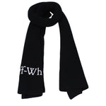 The product with MPN OMMA052KNI0011001 and code F83006 wool in black is a scarves designed by Off-White. It has features like front logo.