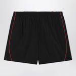 Shorts by Balenciaga in black technical fabric, characterized by an elasticated waist, two side welt pockets, and contrasting red logo lettering on the side. Size and Fit - Model wears size S Model measurements: Height: 185 cm Chest: 105 cm Waist: 85 cm Hips: 100 cm