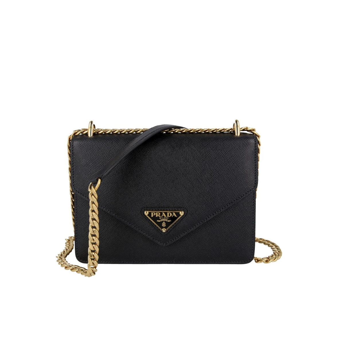 The envelope-style flap design creates clean architectural lines, while the iconic Prada logo adds a subtle yet unmistakable luxury touch. The textured Saffiano finish not only enhances the bag’s visual appeal but also provides scratch-resistant durability, making it perfect for everyday wear.