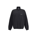 Balenciaga’s Oversized Windbreaker Jacket is a garment with a bold, sporty aesthetic made from durable technical fabric. Featuring contrasting Balenciaga embroidery on the chest and back, it has a high collar, concealed front zipper closure and two zipper pockets on the front. Gathered elastic cuffs and hem ensure a comfortable fit, while the mesh lining ensures breathability and lightness.