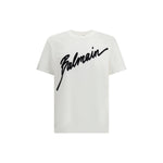 The Balmain Lettre flocked T-shirt is crafted from soft cotton and features a classic ribbed crew neckline and short sleeves. The contrasting printed and flocked Balmain letter on the front adds a bold touch to the piece, offered in a regular fit that enhances its contemporary aesthetic.