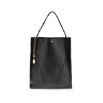 Large Chloé tote bag in shiny black grained calfskin, featuring dangling chain with logo medallions, magnetic closure, two top handles with gold-finish metal ring, one main compartment and gold-tone metal hardware. Size and Fit - Width 35 cm x Height 39 cm x Depth 16 cm Handle drop: 26 cm