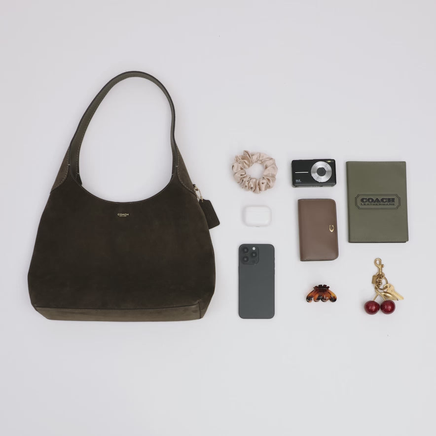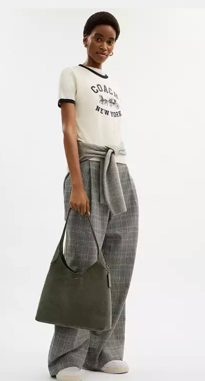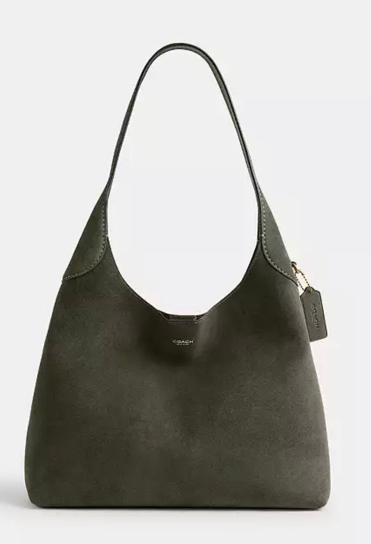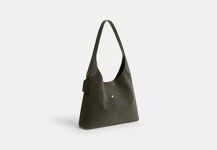 The Coach Brooklyn is an elegant, minimalist silhouette—with a distinctly New York attitude. Crafted of durable, luxuriously soft double-faced suede, this mid-sized hobo style features a roomy interior with a snap pocket for access to essentials. The streamlined 34 is finished with a comfortable, wide shoulder strap and an easy magnetic snap closure.