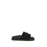 The Chunky Slide Sandals by Fendi feature a wide strap with an adjustable hook-and-loop closure for a personalized fit. Crafted from FF Jacquard nylon and technical ribbon with a tone-on-tone logo, they are embellished with leather piping that enhances the design. The tone-on-tone leather insole and lining offer comfort, while the contoured non-slip rubber sole ensures stability and durability. A perfect blend of practicality and luxury.