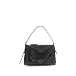 The Voyou Shoulder Bag by Givenchy features a soft V-shaped silhouette and generous volume. The adjustable shoulder strap allows it to be carried by hand, shoulder or crossbody, ensuring maximum versatility. The brand’s signature is stamped on both the front and top of the bag, while engraved metal clasps and gold-tone finish details complete the design with elegance.