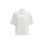 The poplin Shirt by Givenchy expresses a modern tailoring sensibility through the crisp cotton structure and short-sleeve design. The classic collar and concealed button closure create a clean aesthetic, while the engraved Givenchy button adds a refined signature detail. The cape detail at the back brings movement and dimension, redefining the piece with unexpected elegance.
