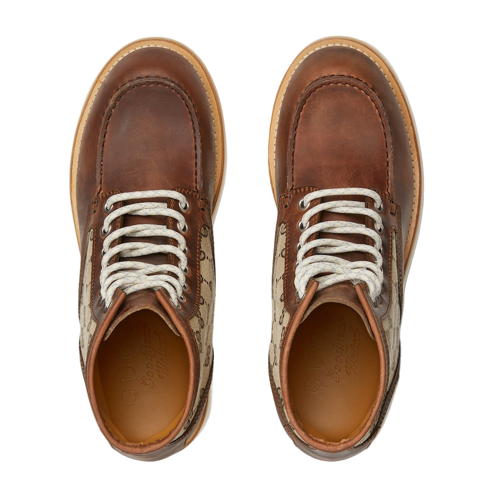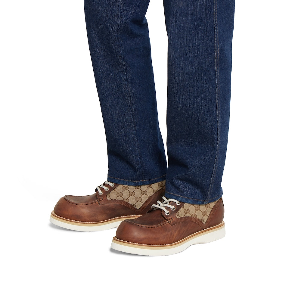 The Lace-Up Boot by Gucci reinterprets a classic silhouette with the brand’s iconic details. A GG fabric insert pays tribute to the Maison’s heritage, while the Goodyear construction ensures durability, artisanal quality, and long-lasting wear. A design that blends tradition and innovation with effortless style.