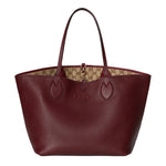 Introducing a reversible style with two distinct looks in one piece, this Gucci Totissima is crafted with grainy leather on one side, and GG canvas on the other. ‘Totissima’ blends the word tote with the Italian superlative, ‘the most’, emphasizing the bag’s functionality and enduring style.
