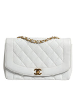 Chanel White Medium Classic DIANA Shoulder Bag Gold Plated Purse