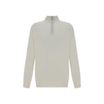 Cashmere Sweater by Brunello Cucinelli combines elegance and functionality in a garment with a refined style. Made of soft, high-quality cashmere, it features a monochrome pattern that enhances the purity of the design. The high collar is complemented by a front half-bust zipper closure, a detail that adds practicality and a sporty touch. The ribbed hem and regular fit ensure comfort and a flawless silhouette. Perfect for casual-chic looks or to add a touch of class to everyday wear.