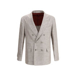 Brunello Cucinelli’s linen Blazer expresses the brand’s light and sophisticated elegance. Featuring a peaked lapel and a double-breasted closure with embossed buttons, this blazer offers an impeccably refined silhouette. It features two flap welt pockets on the front, a slit pocket and two slits on the back for a comfortable and modern fit. A perfect garment for formal and refined looks that enhance the appeal of linen.