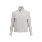Brunello Cucinelli’s Nylon Jacket combines sporty elegance and functionality with sartorial care typical of the house. Featuring a zipper and double-slider closure, it has a structured collar that can be held up for a more assertive look. Low pockets with snap buttons, adjustable cuffs and an elastic hem ensure practicality and comfort. A cupro lining and a well-organized interior with two button pockets and a pen pocket complete the garment, ideal for a dynamic yet refined lifestyle.
