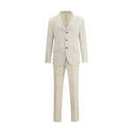 Brunello Cucinelli cotton Suit elegant and sophisticated, perfect for a formal or refined look. The corduroy blazer jacket features a front button closure, three flap welt pockets on the front and a slit pocket on the chest, completed by a classic lapel for a touch of distinction. The matching trousers, also made of cotton, feature a zip and button closure, two side slant pockets, two back welt pockets and belt loops at the waist for an adjustable fit. The monochrome pattern gives the suit a discreet elegance, making it ideal for special occasions or professional contexts.