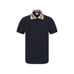 Cotton Polo Shirt by Burberry, classic ribbed collar with iconic all-over repeated Archivio Check pattern detail, tone-on-tone front buttons, monochrome pattern, regular fit.