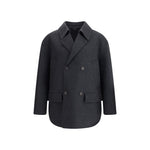 The double-breasted Caban Coat in double mélange wool felt by Fendi offers a refined take on a timeless outerwear silhouette. Featuring a shirt collar and long sleeves with dropped shoulders, it presents a relaxed, modern line. Diagonal welt hand pockets and flap front pockets combine practicality with elegance, while the unlined construction highlights the purity of the fabric and the Maison’s artisanal mastery. A sophisticated piece designed to endure beyond seasons.