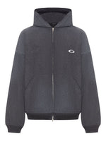 grey cotton zip fastening hooded neck embroidered logo Cotton hoodie