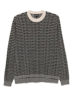 black wool fabric logo pattern ribbed cuffs ribbed hem crew neck Wool crewneck jumper