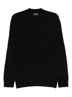 black ribbed texture crew neck long sleeves small logo Wool crewneck jumper