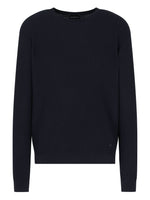 dark blue waffle knit crew neck long sleeves straight hem Wool crewneck jumper