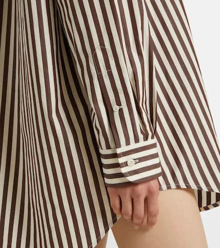 Redefine your wardrobe with the Miu Miu Zip-Up Striped Cotton Poplin Shirt Dress — a masterclass in Miuccia Prada's signature subversion of classic tailoring. This season's must-have dress merges the crisp heritage of a traditional shirt with the ease of a modern silhouette, rendered in the house's impeccably refined aesthetic.