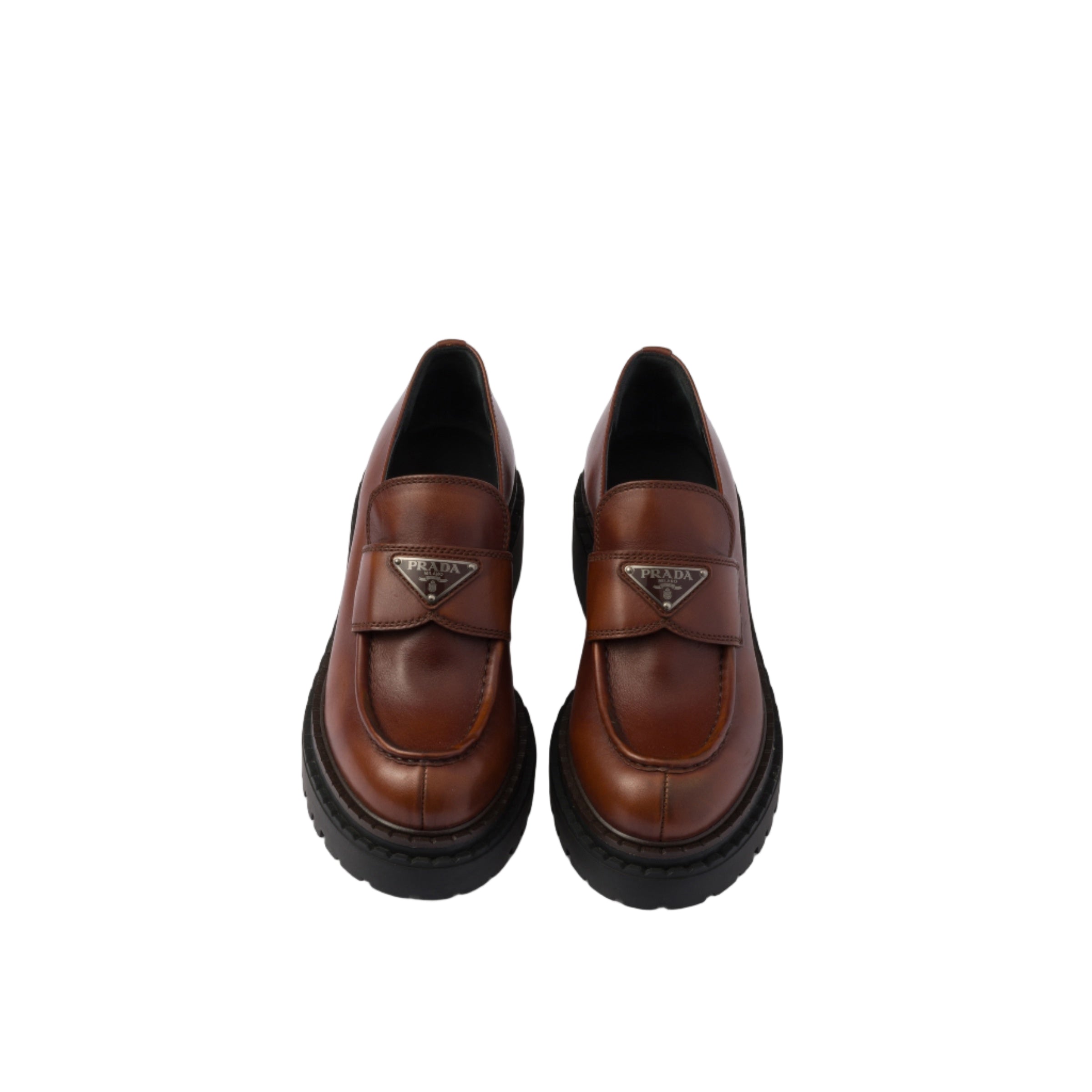 The product with MPN 1D922N054005F0324 and code F84278 suede in brown is a loafers designed by Prada. It has features like front logo.