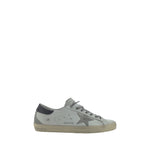 Goatskin Ballstar Sneakers by Golden Goose, lace-up front fastening, an iconic star on contrasting side panel, a round toe, a flat sole, a brand logo press-stamped on the outer side panel, a contrasting embroidered brand monogram label on the front tongue, and suede leather inserts.