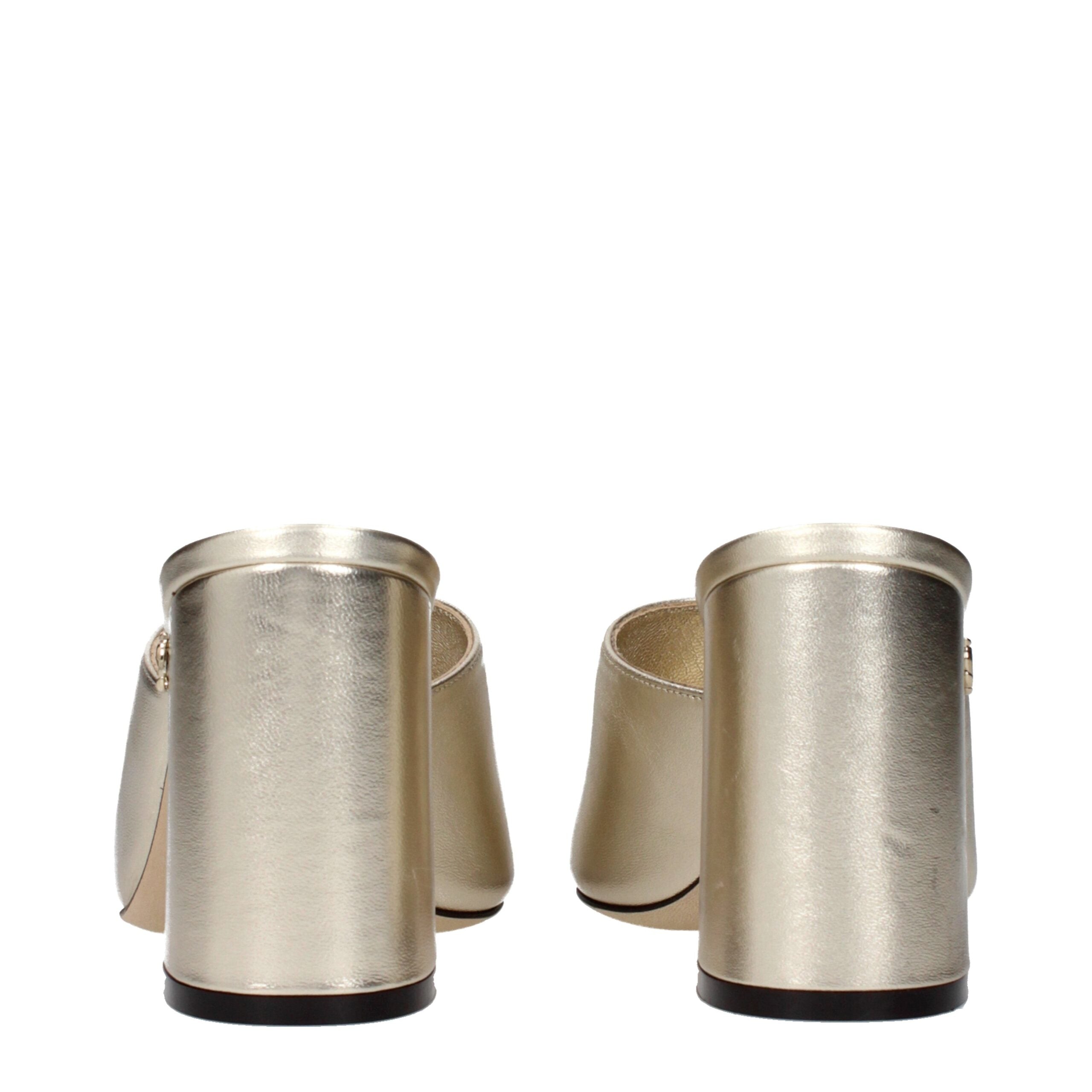 The product with MPN SKYLAHMULE85OMNACHAMPAGNE and code F85105 leather in gold is a sandals designed by Jimmy Choo. It has features like side logo.