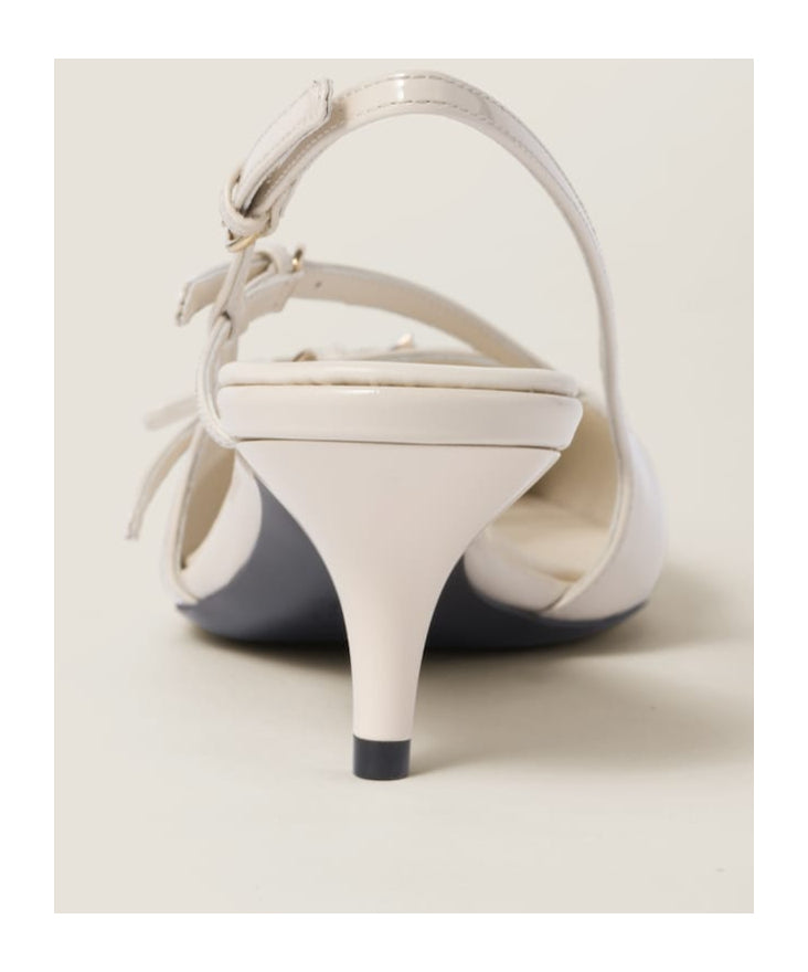 Crafted in Italy with expert precision, these pumps feature a sleek pointed toe and smooth ivory leather that creates a clean, architectural silhouette. The slender slingback strap adds a delicate yet secure fit, while the polished finish enhances the understated elegance of the design. These pumps are a true embodiment of Miu Miu’s signature blend of playful femininity and bold style.