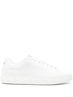 Lace-up sneakers, logo on the tongue, rounded toe and rubber sole. Greca leather sneakers Size and Fit - Heel 1,4 in / 3,5 cm; Platform 1,2 in / 3 cm