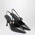 Slingback by Dolce & Gabbana in black leather, characterized by a pointed design, front strap with gold DG buckle on the side, elasticized strap at the back, insole with logo label, high stiletto heel, and leather sole. Size and Fit - Heel 7,5 cm