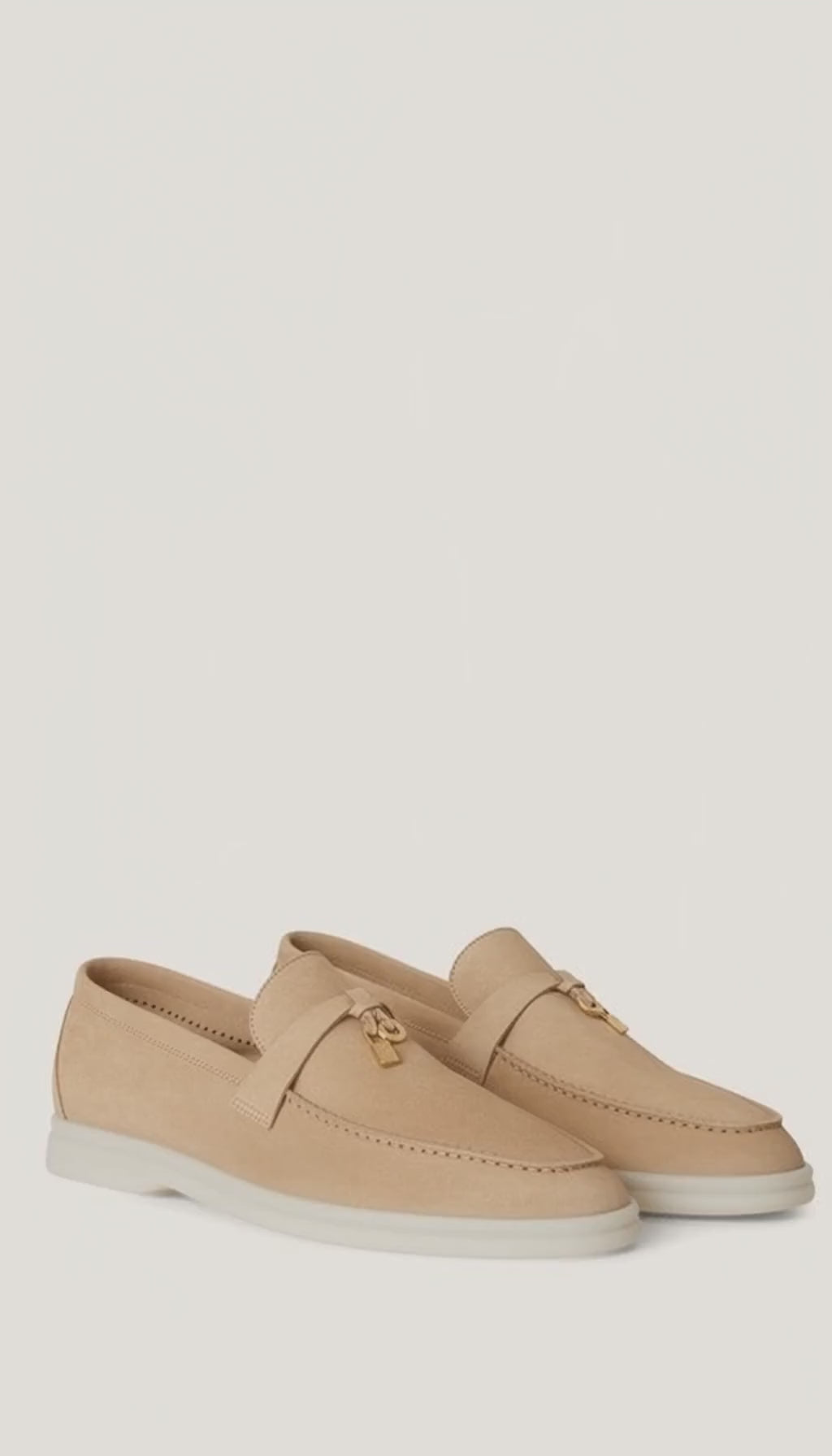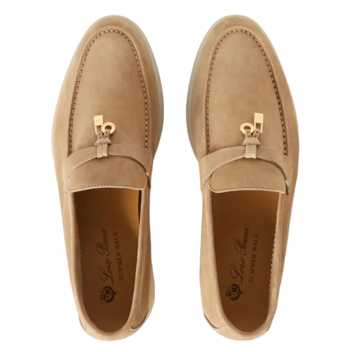 Indulge in effortless refinement with the Loro Piana Summer Walk Suede Leather Loafer in Sandstone, a masterclass in understated luxury and warm-weather elegance. Crafted in Italy from exceptionally soft, velvety suede, this iconic loafer delivers a barefoot-light feel with the polish of a true luxury staple. The versatile Sandstone hue—an elevated neutral—pairs seamlessly with linen tailoring, summer denim, and relaxed resort wear.