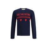 The Chez Valentino Wool Sweater by Valentino is a timeless and refined garment. Featuring a ribbed crew neck and ribbed hem and cuffs, it offers a comfortable and stylish fit. The iconic Chez Valentino signature on the front adds a distinctive and recognizable touch, making the sweater ideal for a sophisticated, minimalist look.