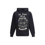 Valentino’s Le Chat De La Maison Hoodie is a casual piece with a distinctive, modern character. The adjustable drawstring hood and ribbed hems on the cuffs and hem offer comfort and functionality. The contrasting Le Chat De La Maison print on the front adds a graphic and unique touch, signing the look with Valentino’s unmistakable elegance. Perfect for a sophisticated take on casual style.
