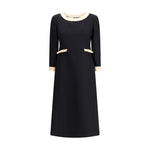 The Wool Dress with Bow by Valentino Garavani celebrates femininity through clean lines and refined details. The round neckline and three-quarter sleeves meet the fitted waist, enhancing the silhouette with natural elegance. The bow detail adds a romantic and distinctive touch, reflecting the maison’s unmistakable style.