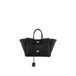 Balenciaga’s Bel Air small Shoulder Bag is a perfect example of style and functionality. Featuring two tubular leather handles and an adjustable, removable shoulder strap, it offers versatility and comfort. The embossed Balenciaga Paris logo with lamination on the back adds a touch of understated elegance. Distinctive details include a removable key ring with double spiral loop, antiqued gold hardware and snap buttons on the sides. The belt loop closure for the front, combined with the engraved logo on the closure system, completes the refined design of this bag.