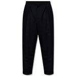 Balmain black cotton trousers with white side stripes, side welt pockets, zip and hook fastening, two back pockets with buttons