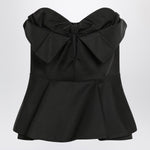 Strapless top by Alexander McQueen in black silk blend duchess, featuring draping on the neckline, bodice with cut-out details, flared hem with ruffles, and a zip closure at the back. Size and Fit - Model wears size 40 IT Model measurements: Height: 178 cm Chest: 83 cm Waist: 63 cm Hips: 91 cm