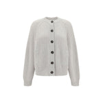 Brunello Cucinelli’s cashmere Cardigan is an elegant and comfortable garment featuring raglan sleeves that offer greater freedom of movement. The front closure with contrasting buttons adds a touch of originality to the design, while the two welt pockets on the front offer practicality without compromising style. Ribbed cuffs and hem lend structure to the garment, while the ribbed weave lends a rich, sophisticated texture. The oversized fit ensures a relaxed and modern look, perfect for a comfortable yet refined outfit.