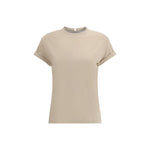 Cotton T-Shirt by Brunello Cucinelli, crewneck, keyhole back button closure, brand’s iconic contrasting appliqué jewels on crewneck, regular fit.
