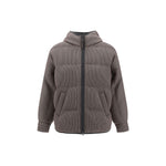 Brunello Cucinelli’s Lurex Padded Down Jacket is a garment that flawlessly combines practicality and luxury. The hooded design offers extra protection against the cold, while the front closure with a double-slider zipper allows for easy and versatile adjustment. The two side welt pockets are perfect for storing small items securely. Applied all-over lurex gives the down jacket a shimmering, sophisticated effect, while the ribbed design adds an interesting touch of texture. Padded and quilted, this down jacket provides optimal warmth, making it ideal for the colder seasons without sacrificing style and elegance.
