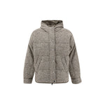 Brunello Cucinelli’s reversible Down Jacket is a functional and sophisticated piece with a hood and front zipper and snap closure. The two side welt pockets offer practicality, while the side slits add a touch of originality. One side of the down jacket is made of fabric, while the other side is made of nylon to offer versatility and comfort. The padded and quilted design provides warmth and style for any occasion.