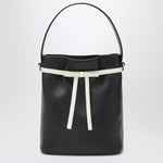 Bucket bag by Ferragamo in black leather, featuring top handle, adjustable and removable shoulder strap, mascarpone-colored bow detail and internal flat pocket. Size and Fit - Width 15 cm x Height 19 cm x Depth 10 cm Adjustable shoulder strap length min 70 cm - max 80 cm Handle drop: 10 cm