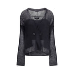 Giorgio Armani’s Twin-set, consisting of a double-breasted cardigan and top in a wool and mohair blend, stands out for its refined mesh stitching that embellishes the cardigan. Paired with a simple top with thin shoulder straps, it creates a versatile ensemble with a relaxed feel, ideal for an elegant and comfortable daytime look.