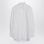 Wide Givenchy white cotton shirt, characterized by hidden front buttoning, long sleeves with buttoned cuffs, and a curved hem that is longer at the back. Size and Fit - Model wears size 36 FR Model measurements: Height: 179 cm Chest: 83 cm Waist: 61 cm Hips: 88 cm
