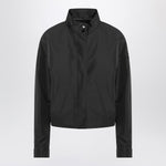 Jacket by Moncler Genius X EE72 by Edward Enninful in black, featuring hidden front closure with two visible snap buttons, high collar, two side pockets, snap-button cuffs, and long sleeves with one logo patch. Size and Fit - Model wears size 1 Model measurements: Height: 178 cm Chest: 83 cm Waist: 63 cm Hips: 91 cm