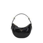 Leather Shoulder Bag by Prada, varnished leather design, top zipper closure, one adjustable rigid flat handle, one interior compartment, iconic enameled triangular plaque applied to front.