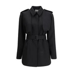 The Usuaia Jacket by The Row is a monochrome trench coat in double-face gabardine, a perfect fusion of wool and cashmere that offers elegance and comfort in any season. With a single-breasted design and detachable sleeves, this jacket is versatile and suitable for a variety of styles and weather conditions. Sophisticated and discreet slanted welt pockets add functionality to the look, while the concealed front button closure creates a clean, flawless silhouette. A removable belt with buckle defines the waist and allows you to customize the fit.