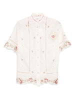 cream floral print lace detailing button fastening scalloped hem short sleeves Patience linen shirt