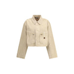 Balenciaga’s Workwear crop Jacket reinterprets workwear with a modern and sophisticated twist. Featuring a classic collar, zipper front closure and snaps, it has two zippered patch pockets and a mini logo patch on the front. The worn-in design gives the garment an authentic and contemporary allure, ideal for those seeking style and functionality.