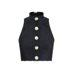 Balmain’s crop Top is a striking garment defined by an American neckline and a rich baroque pattern. Bare shoulders enhance the bust line, while decorative metal "Gold and Gold Coin" buttons on the front add an iconic touch. The back closure is completed with an exposed metal zipper with Balmain Paris engraved slider, a detail that reflects the Maison’s bold elegance.